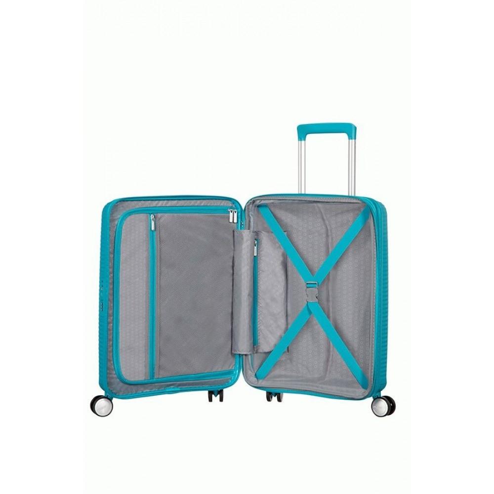 SoundBox – это наша новая полипропиленовая коллекция, навеянная мировым ритмом, с особым высокопрочным оформлением в виде концентрического круга, напоминающего винтажную виниловую пластинку. Это первые полипропиленовые чемоданы на молнии бренда American Tourister с возможностью дополнительного расширения, увеличивающей используемое пространство чемодана, чтобы Вы смогли положить в него самые экзотические сувениры со всего мира. Дизайн чемоданов был разработан специально для любителей фанка и путешествий, и вся линия доступна в шести ярких и игривых расцветках. Почувствуй звук и путешествуй налегке с нашей новой коллекцией SoundBox.