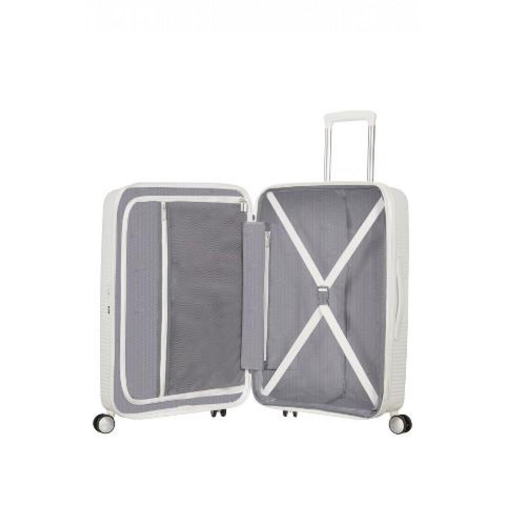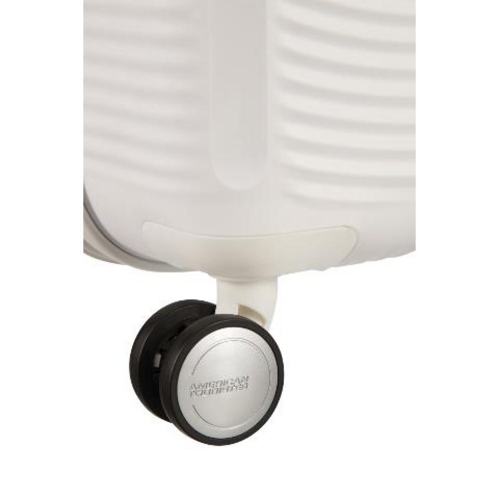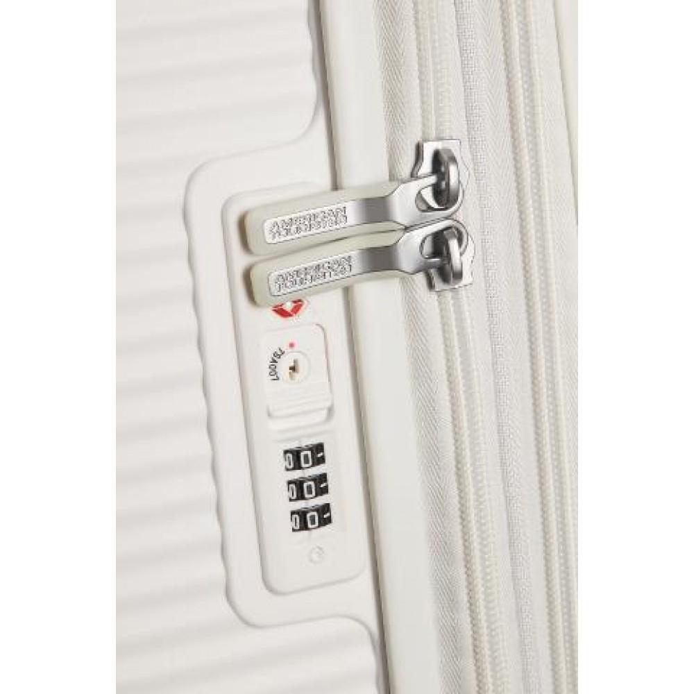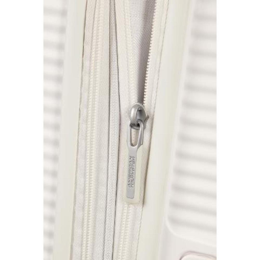 - Первый полипропиленовый чемодан на молнии бренда American Tourister с функцией дополнительного расширения