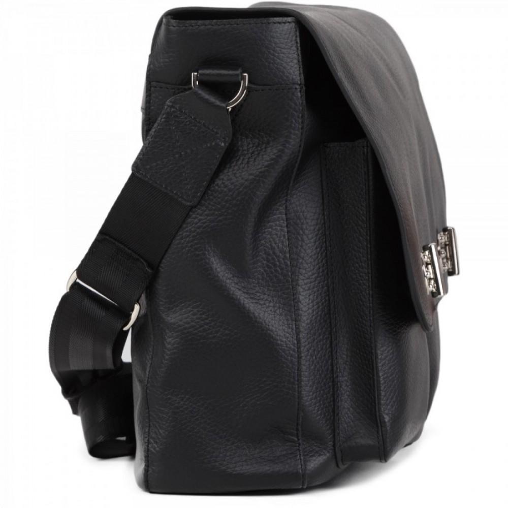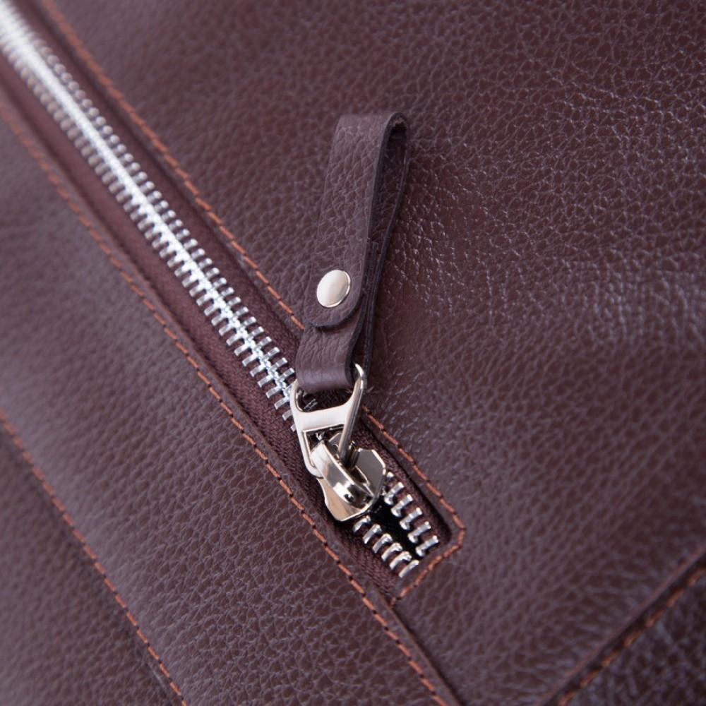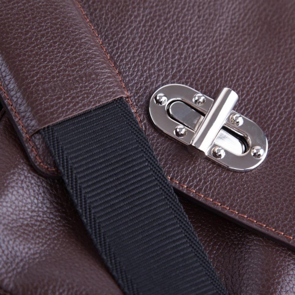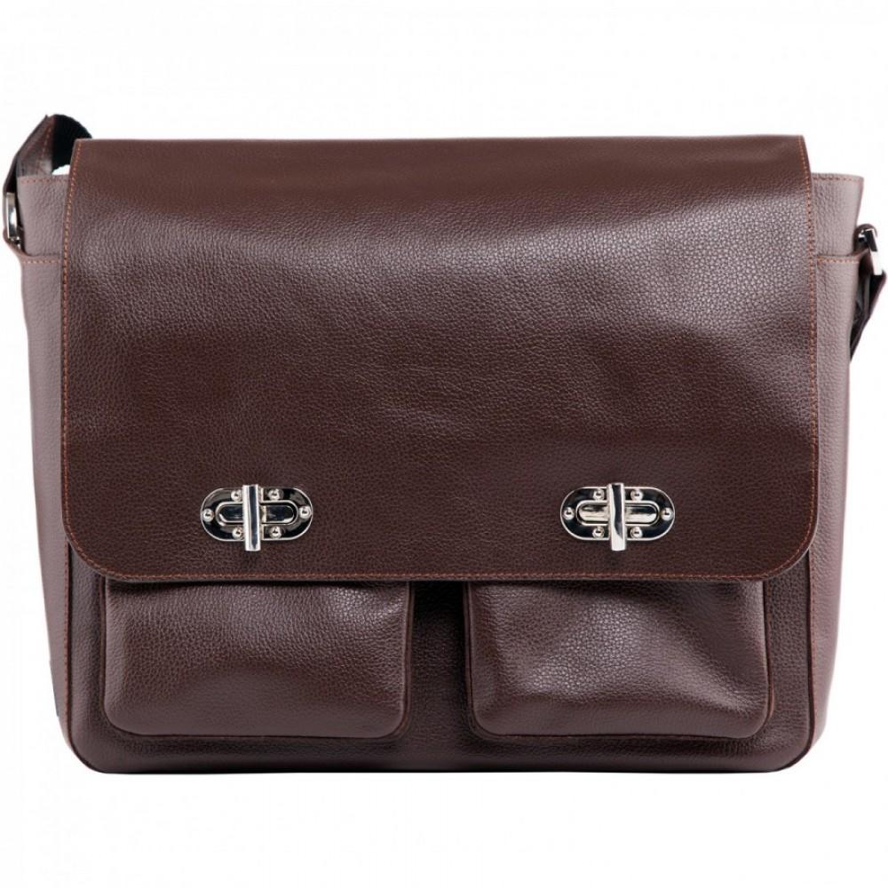 Безупречной выделки гладкая кожа в коричнево-коньячных тонах обладает богатой фактурой и воплощает в себе наиболее выигрышное цветовое решение. Внутреннее усиленное отделение для портативного компьютера обеспечит его гарантированную защиту, а множество, как внешних, так и внутренних карманов разместят в себе канцелярские принадлежности и бизнес-атрибутику. Плечевой ремень с кожаной накладкой обуславливают достойный уровень комфорта при ношении изделия.
