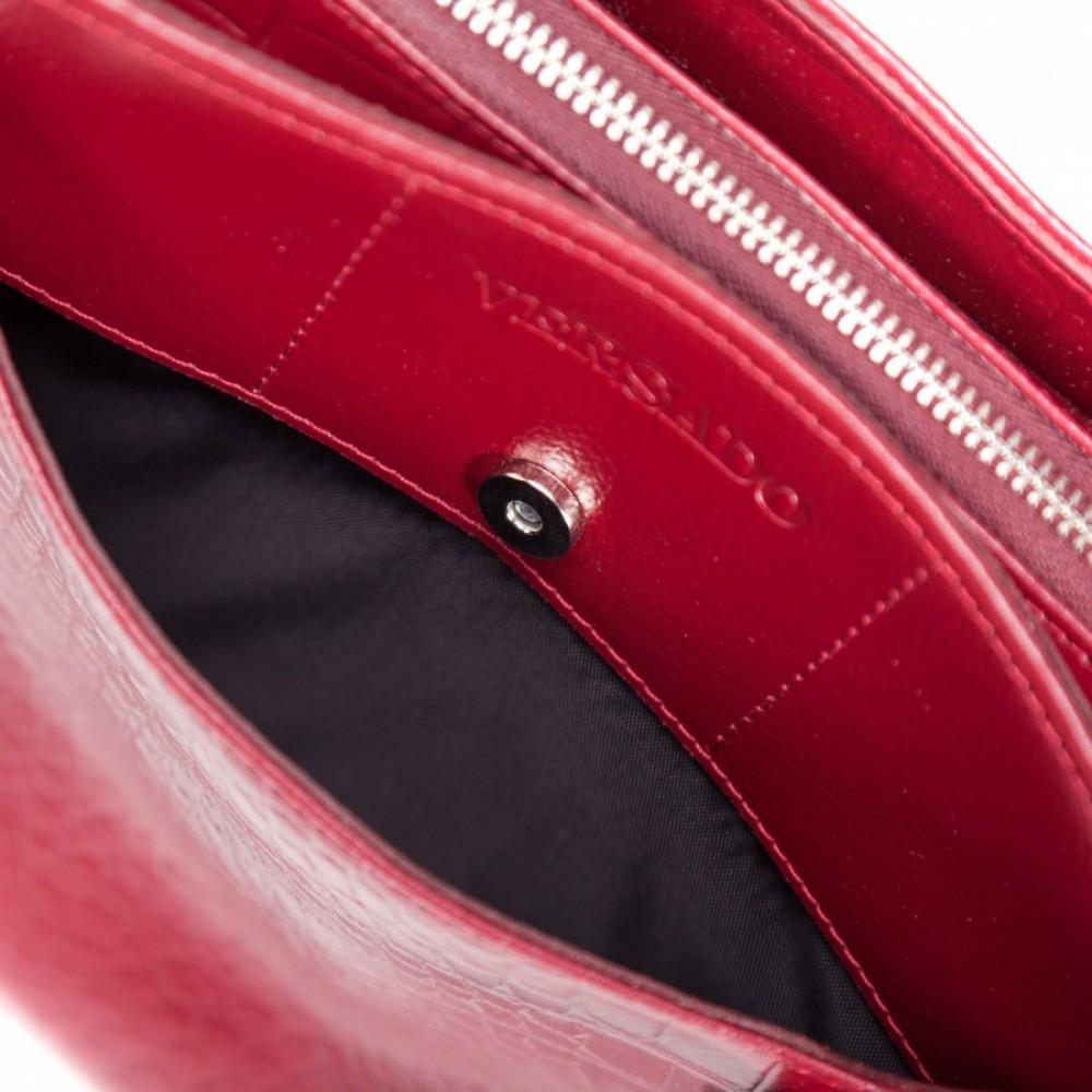 Кожаная сумка станет отличным подарком, желанным и таким необходимым. Модель Б442 изготавливается в различных цветах. Любители утонченной классики выберут благородный нестареющий черный цвет. Яркие личности, привыкшие находиться в центре внимания, остановятся на сумке красного колера. В любом случае, сумка не содержит вычурных деталей – любой цвет будет смотреться органично. Аксессуар станет отличным дополнением образа для стильной леди, которая живет в динамике городских будней. Фирменный логотип на лицевой части изделия – знак качества VERSADO, которому доверяют.