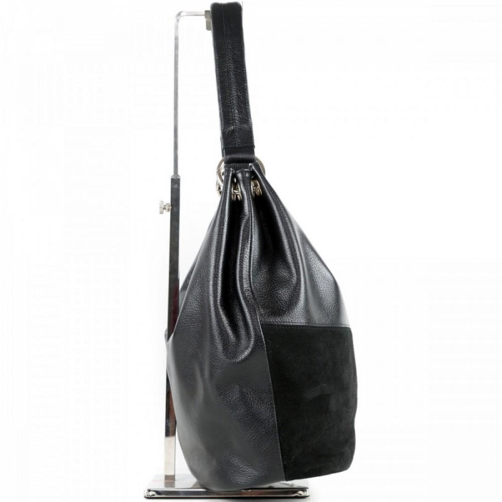 Изделие мягкой конструкции выворотное с жесткой прокладкой дна. Изготовлено прошивным методом. Состоит из одного отделения, закрывающегося на молнию. Передняя и задняя стенки разрезные. На задней стенке подвесной карман на молнии. Внутри подвесной карман на молнии и накладной карман-органайзер. Изделие имеет одну полудлинную ручку, которая крепится на кольца. На дне защитные ножки.
